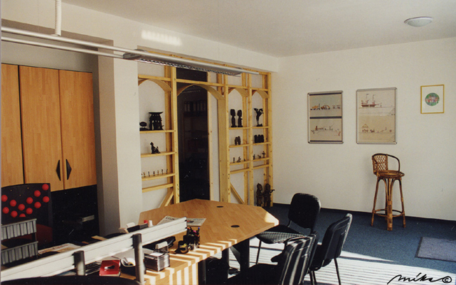 Büro-Trennwand mit Stellflächen für Kunstgegenstände